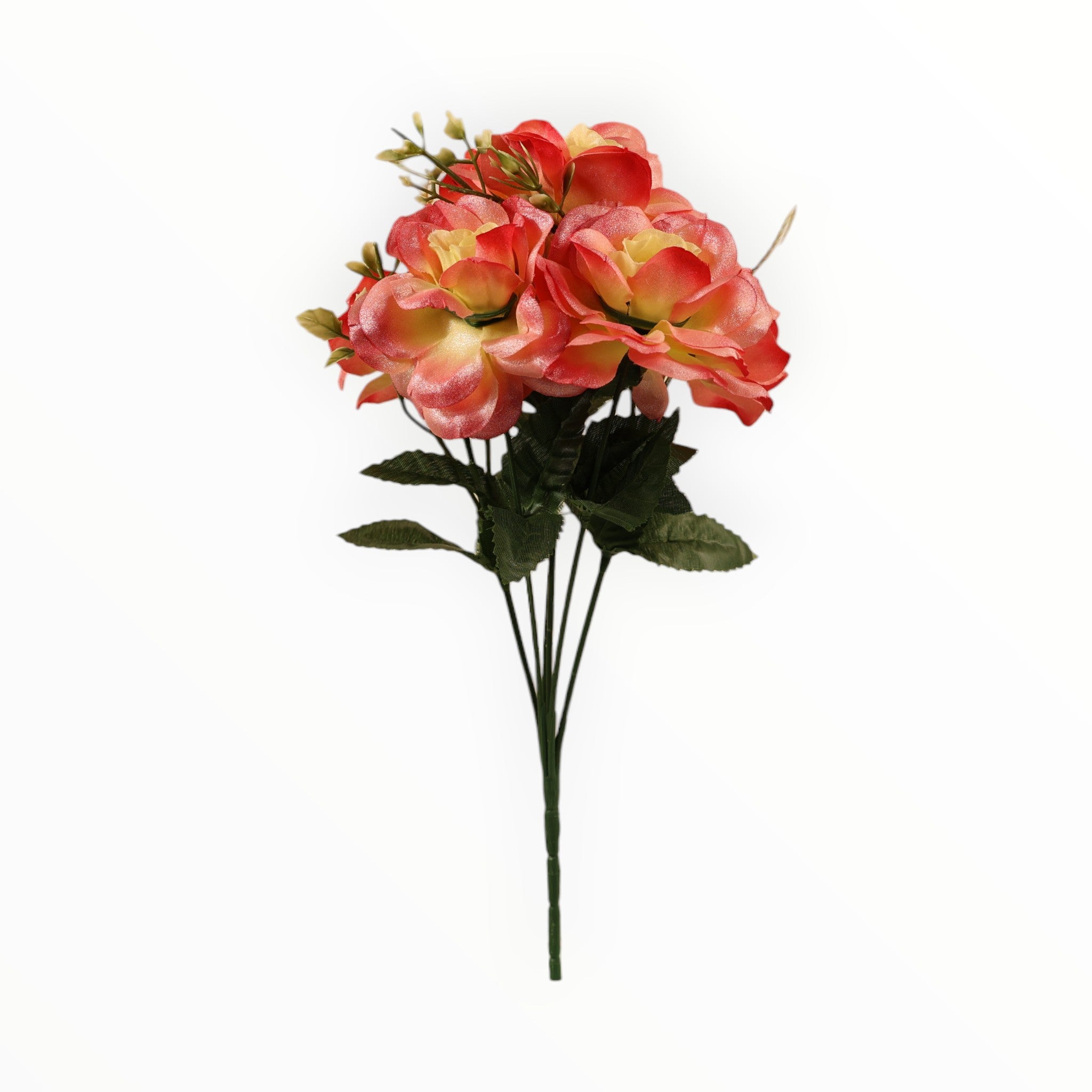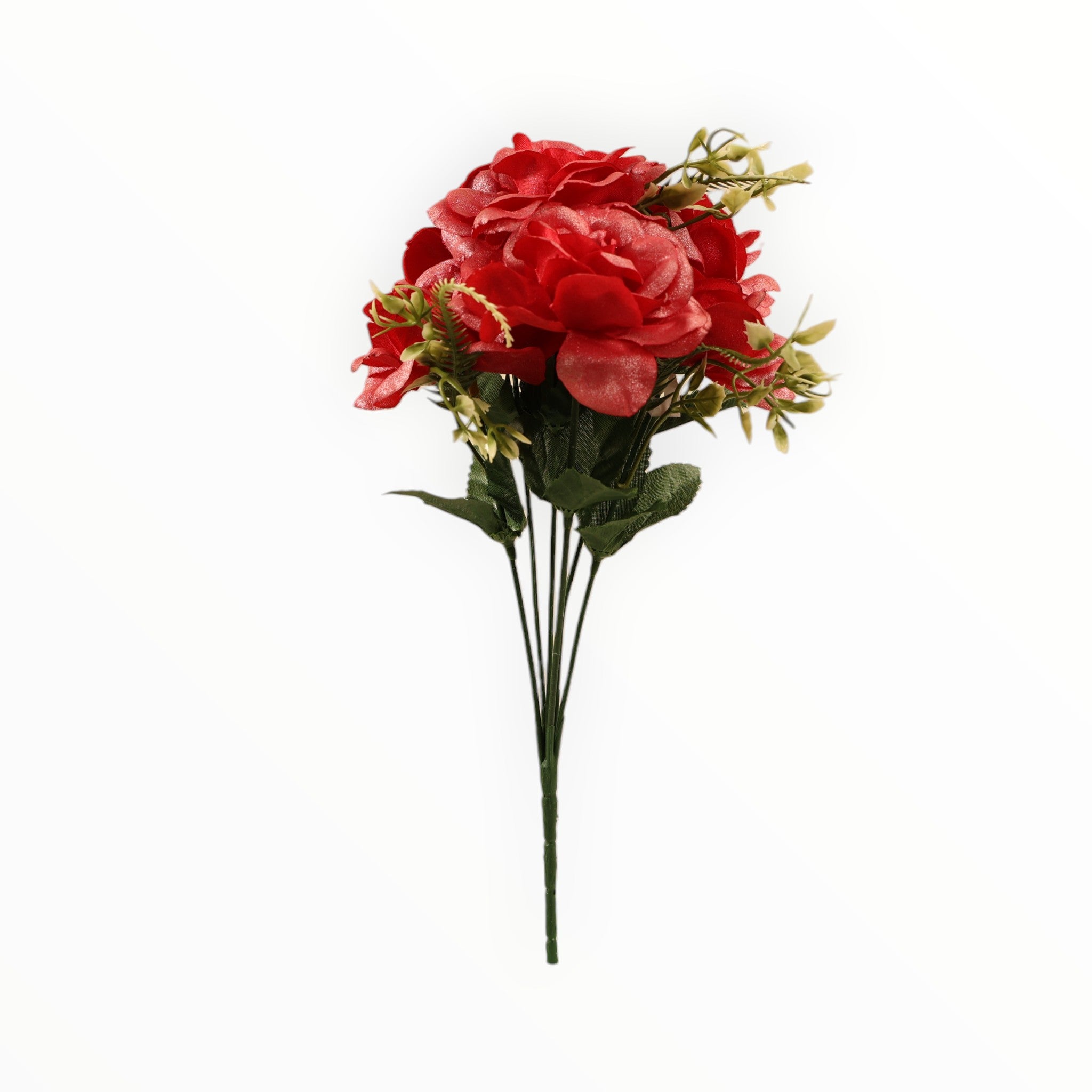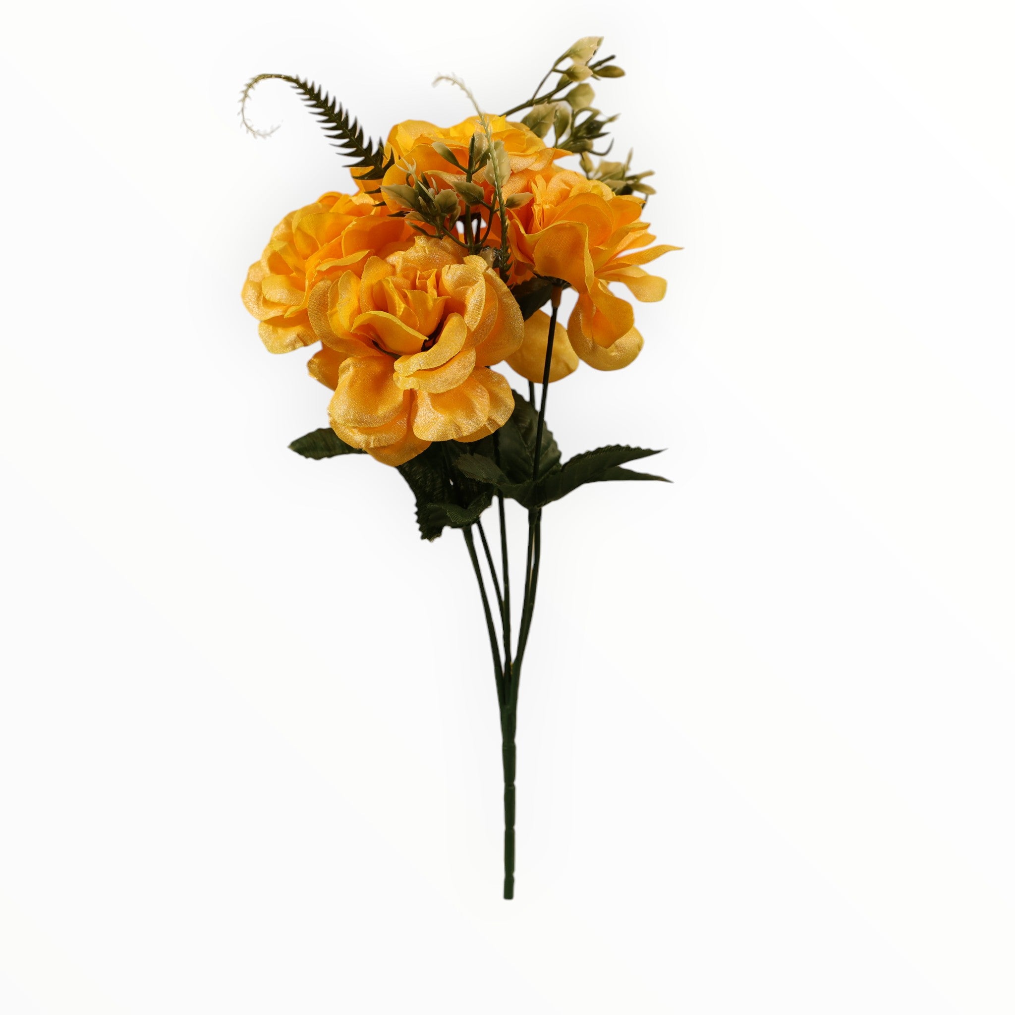 · Incluye delicadas ramas de helecho y hojas verdes con venas realistas que realzan la belleza de las flores.