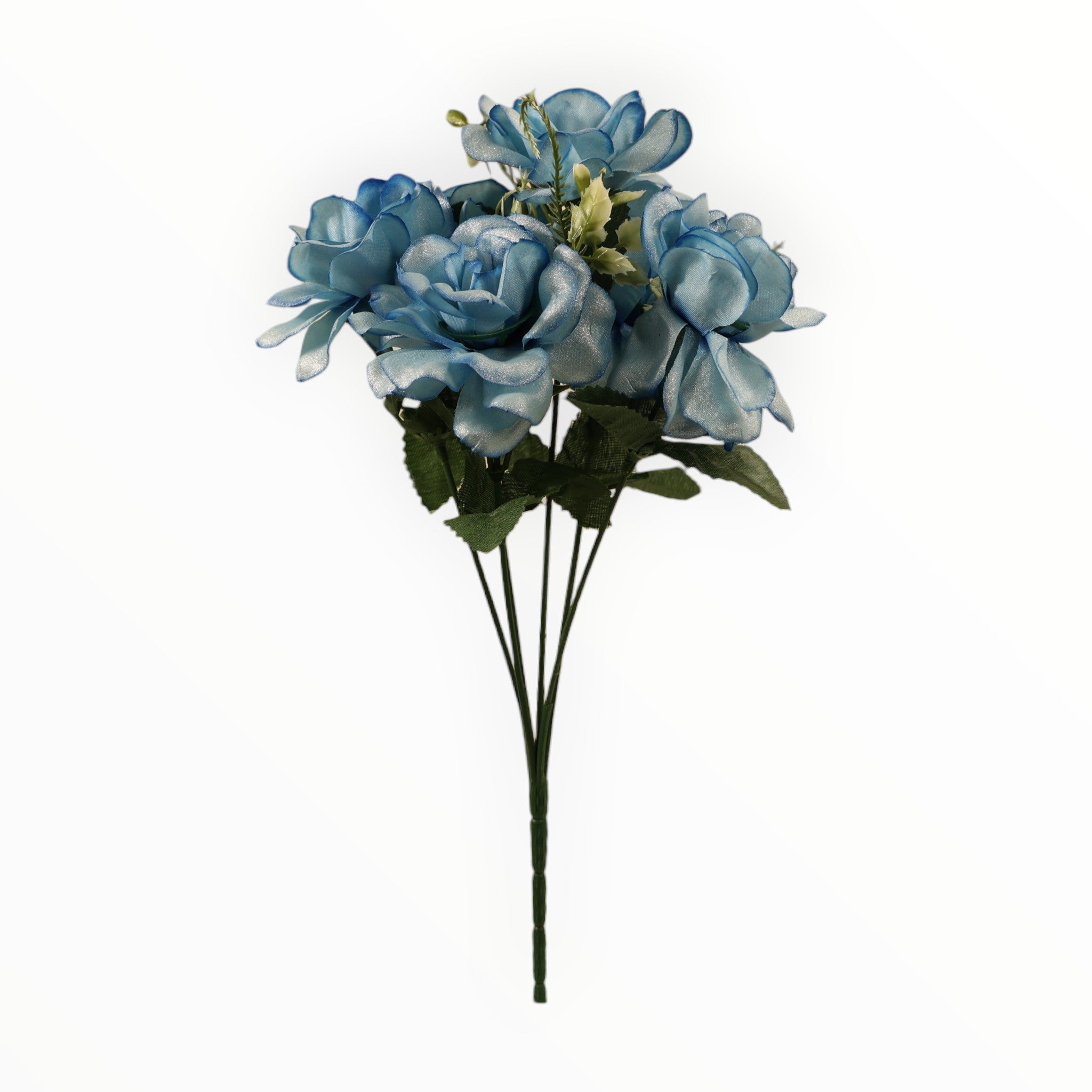 · Mini rosas con acabado iris/metálico que capturan la luz, creando un efecto visual sofisticado y contemporáneo.