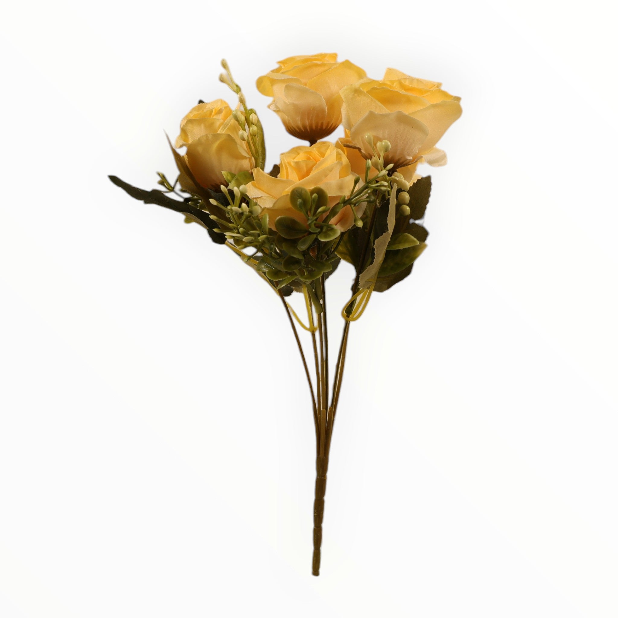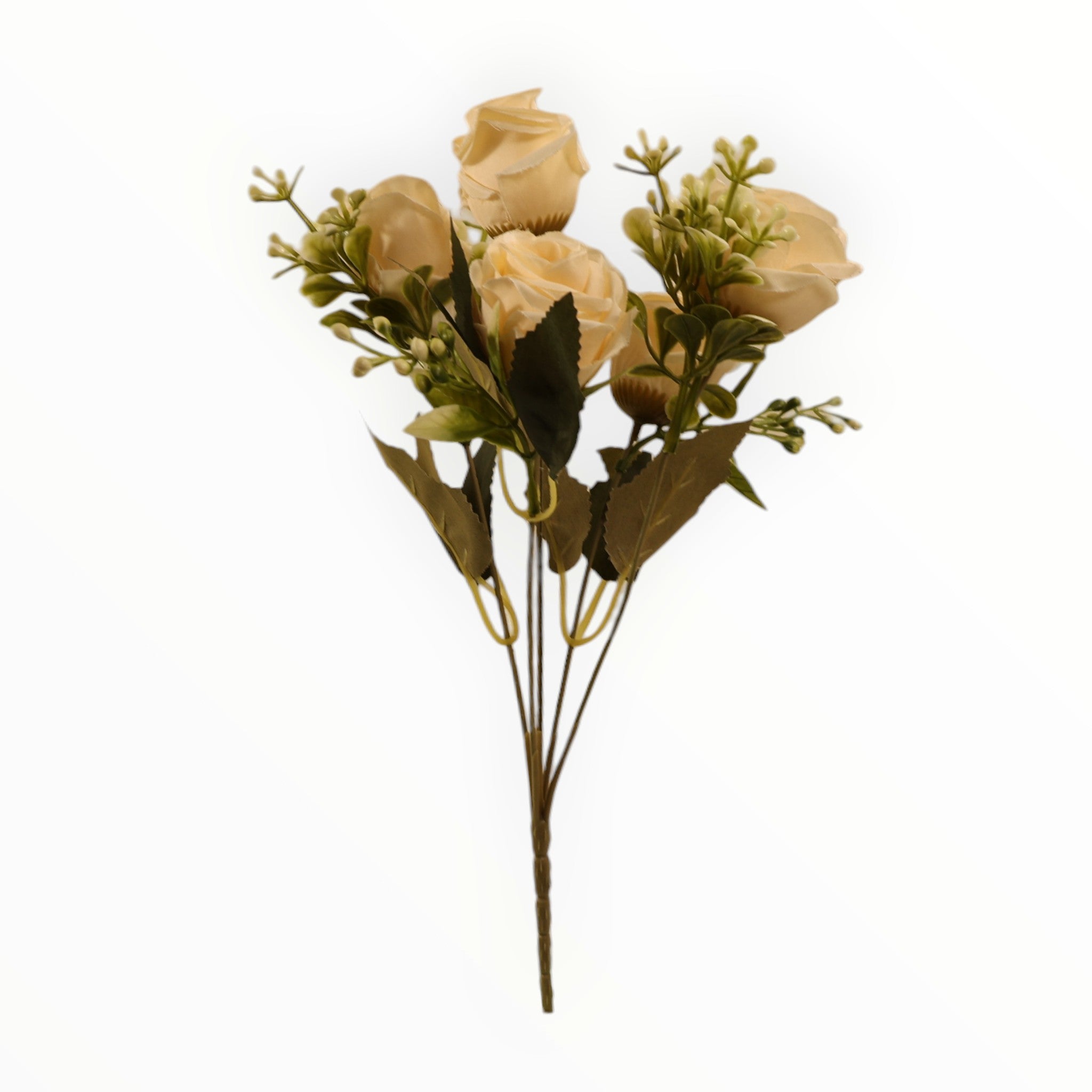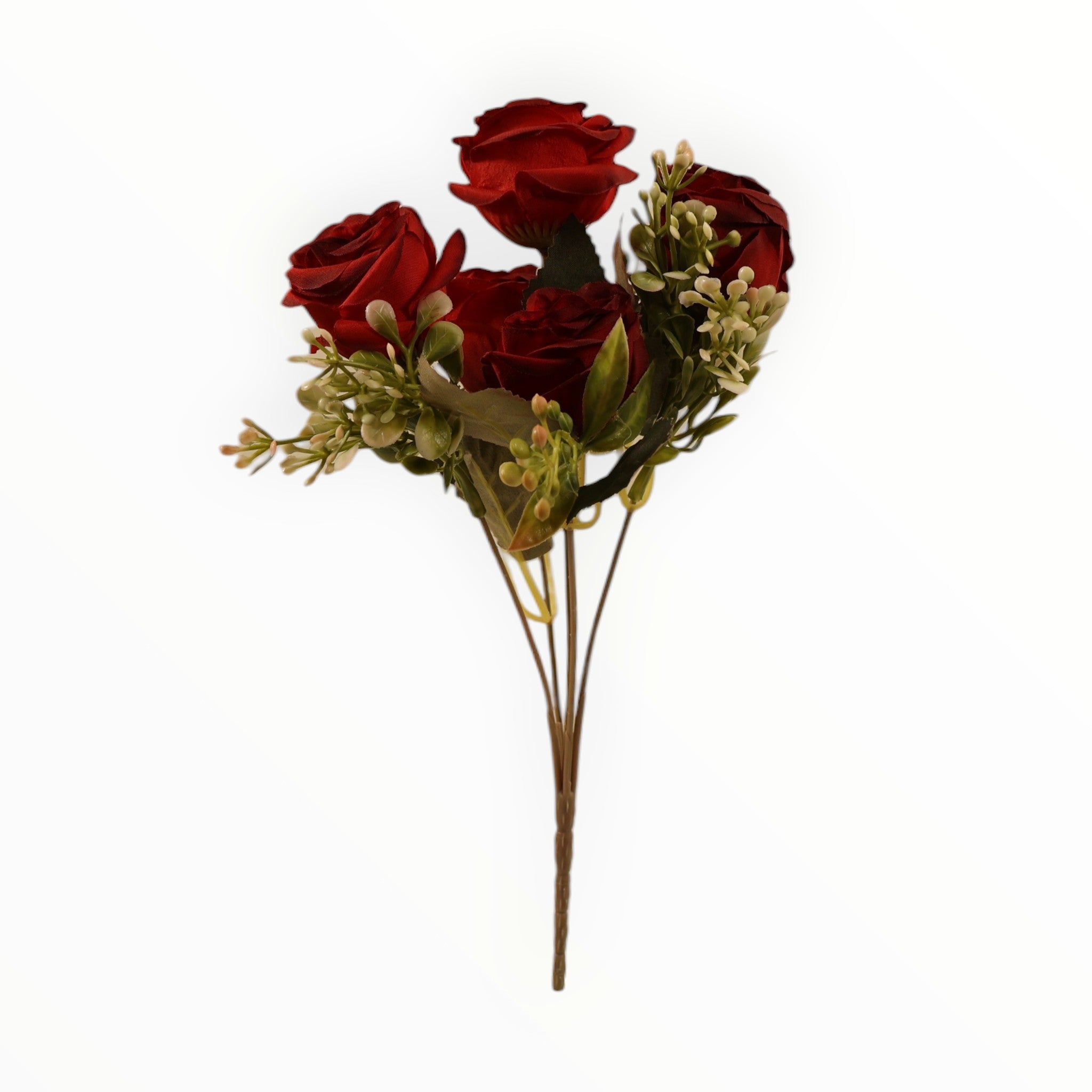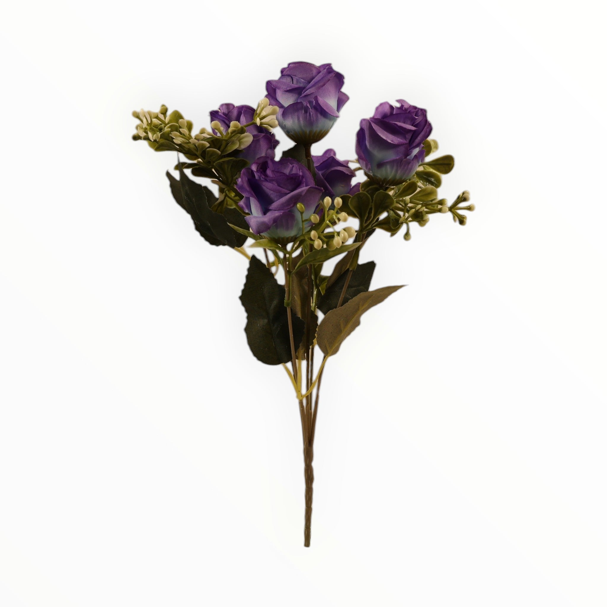 · Incluye 6 rosas, acompañadas de follaje verde y pequeñas flores de relleno que le aportan un aspecto voluminoso y auténtico.