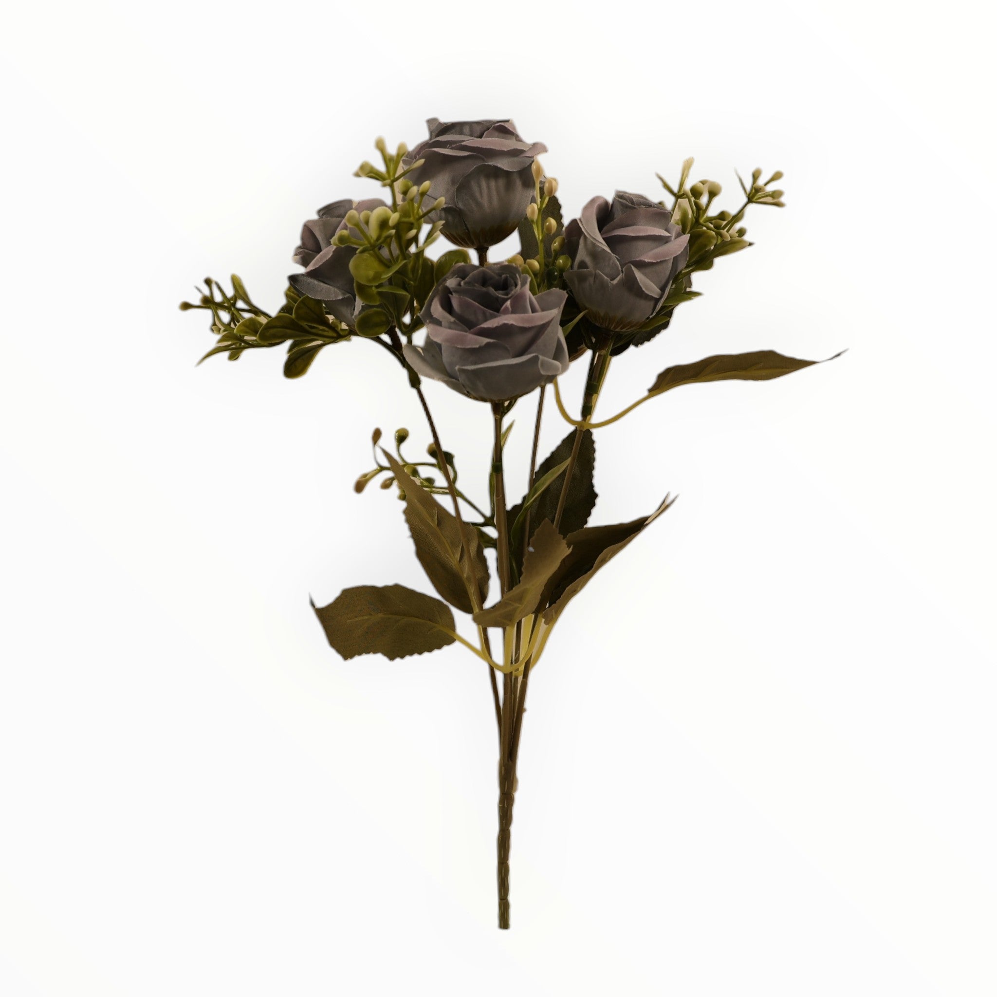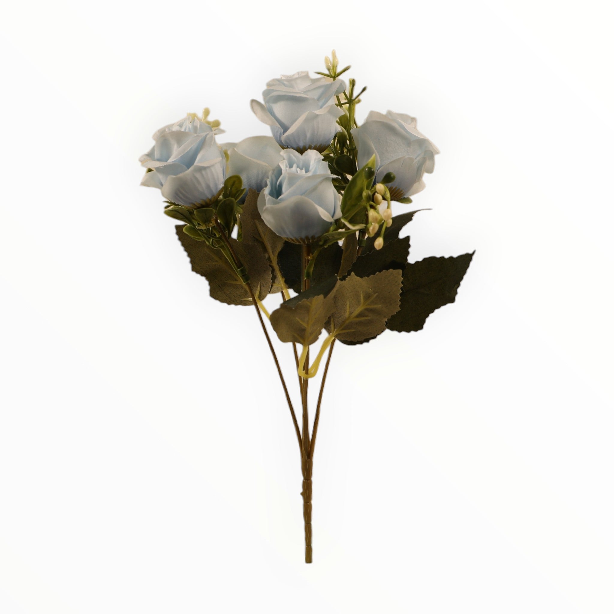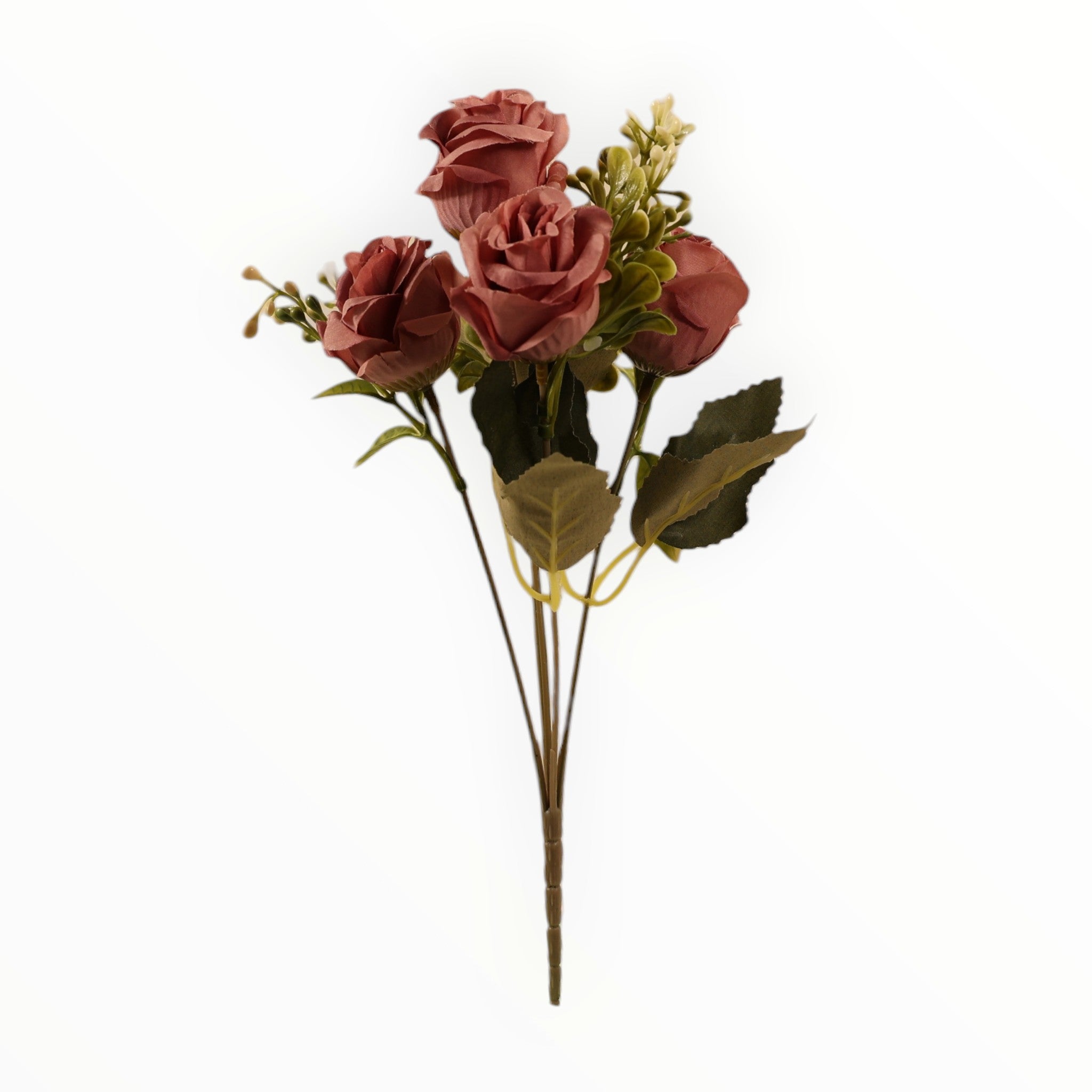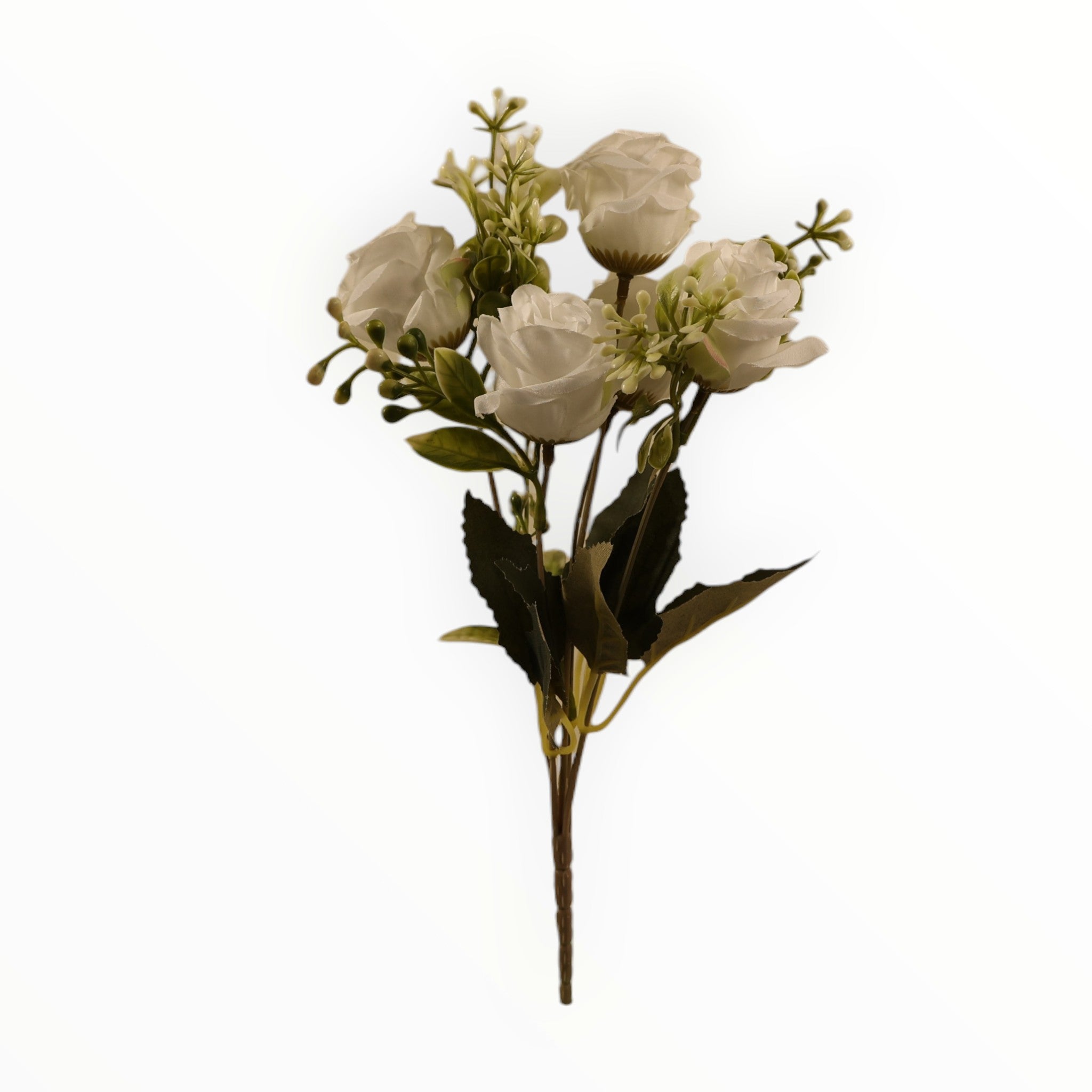 · Incluye 6 rosas, acompañadas de follaje verde y pequeñas flores de relleno que le aportan un aspecto voluminoso y auténtico.